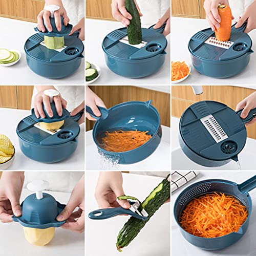 Cucina professionale in acciaio inossidabile,Taglio Legumi Multifunzione 12 in 1,Taglio di verdure manuale,Cucina professionale,Legumi per carota, cetriolo,cipolle