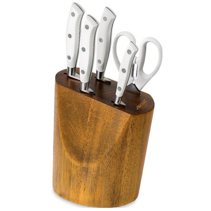 SET CUCINA RIVIERA WHITE - Set composto da elementi di base per una cucina ben attrezzata. Il tutto disposto in un blocco di legno di gomma laccato color noce. Set da cucina della serie Riviera Blanc. Questa serie si distingue per il manico bianco e la ghiera alla francese. Forgiato da un unico pezzo di esclusivo acciaio inossidabile NITRUM®. Questa nuova serie combina linee arrotondate con facilità d'uso e semplicità, sia per uso professionale che domestico. Un set composto da elementi di base per una cucina ben attrezzata. Il tutto organizzato in un blocco di legno di gomma laccato color noce. - Rif. 230224 Taglierina con lama da 100 mm. - Rif. 233424 Lama per fornelli 150 mm. - Rif. 233624 Lama per fornelli 200 mm. - Ref. 231324 Tagliapane con lama da 200 mm. - Ref. 784911 Forbici da cucina 195 mm. - Caratteristiche: Serie:Riviera Blanc Materiale della lama:Acciaio inossidabile forgiato NITRUM®. Materiale dell'impugnatura:Poliossimetilene (POM) Colore:Bianco Rivetti:Acciaio inox