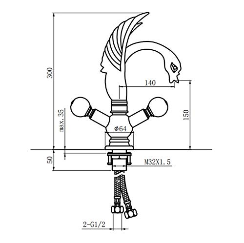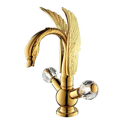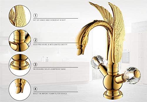 Cucina Rubinetto Rubinetti per lavabo Tutti Rubinetto per lavabo in Rame Cigno Rubinetto per Piatti Aperto d'Epoca in Argento Dorato Antico Raccordi Standard (Color: Gold)