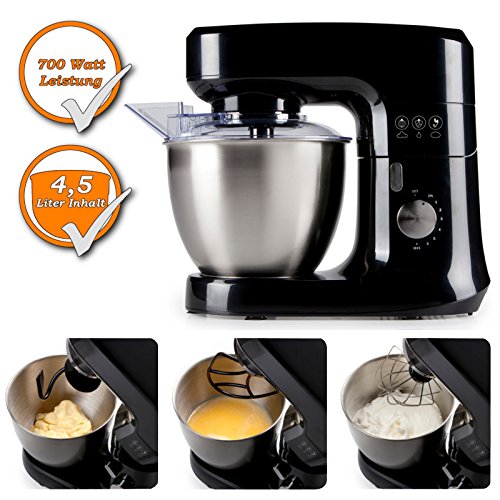 Cucine eismaxx 4,5 litri, 700 Watt di potenza, Profi-impastatrice con pianeti cambio nero