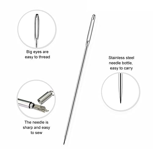 【Facile da trasportare】: Gli aghi per cuciture a occhio grande sono resistenti alla ruggine e durevoli, confezionati in un Flacone ago in acciaio inox.Gli aghi per cucire a mano multi-dimensioni sono tenuti organizzati in un contenitore rotondo compatto, molto maneggevole e facile da riporre e trasportare.