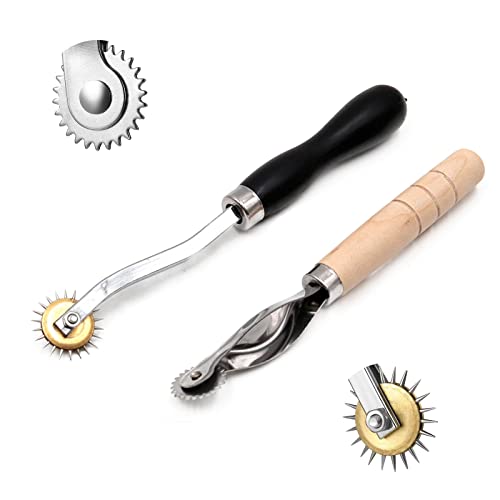 Cucito Artigianale Strumento da Roulette, Pelle Carta Tessuto Ruota, Cucire Strumenti Ruota, Rotella per Sarti Ruota per Ruota Punto Rovesciato Ruota Rintracciamento Seghettata con Manico Legno