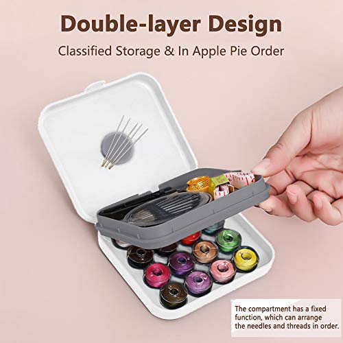 【Design a Doppio Strato】La kit da cucito a due strati con clip per rocchetto può essere divisa in più parti, adatta per riporre bobine, infila ago, ditale, aghi, forbici e metro a nastro. Gli scomparti hanno anche una funzione di fissaggio, in modo che gli oggetti possano essere posizionati ordinatamente. portatile cucito kit viaggio