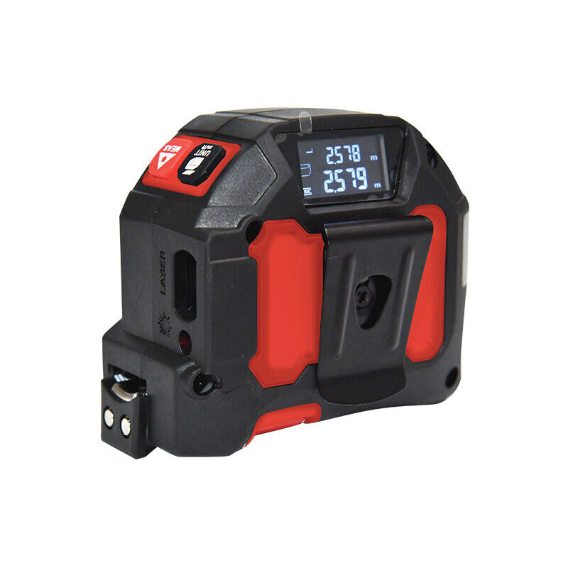 Dati tecnici Produttore: Pro Codice produttore: 3-01-06-L1-084 Colore raggio laser: Rosso Precisione: ± 2 mm Portata (massima): 40 m Schermo: LCD Risoluzione: 0,001 m Telemetro laser DL-40M5 con telemetro da 5 m dimensione di avvolgimento La precisione della misurazione laser è di ± 2 mm. Consente di lavorare fino a una distanza di 5 m con una misura di avvolgimento integrata con freno d'inversione e fino a 40 m con un modulo laser. Schermo LCD illuminato. Calibro a rullo in acciaio, classe di precisione II Risoluzione di misurazione: 0,001 m La scala aggiuntiva sul retro del pannello di misurazione consente una misurazione verticale più comoda. Gancio con magnete. Dispone di un gancio in metallo per cintura. **Le immagini sono solo a scopo illustrativo