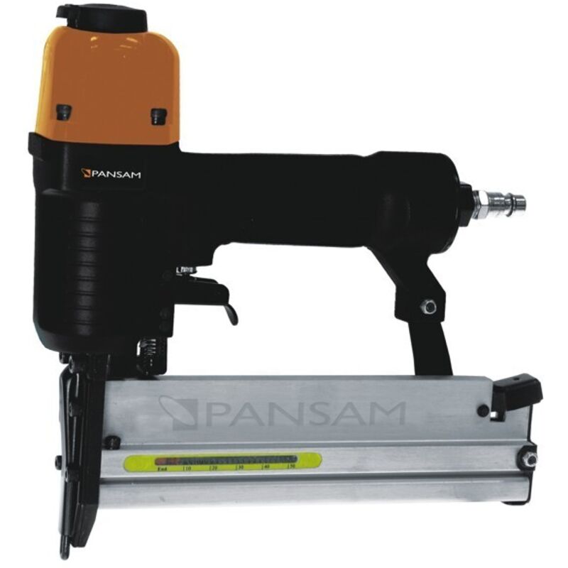 Dati tecnici: Peso: 1,6 kg. Pressione di esercizio consigliata: 5,4-8 bar. Connettore rapido: 1/4 di pollice. Tipo di chiodo: A536015, A536020, A536025, A536030, A536040, A536045, A536050 36130 A536135 A536140 Requisiti di utilizzo dell'olio: A531002 Cucitrice pneumatica 2 in 1 (Ga18, tipo 90) Graffette 16-4 0 mm . Dispositivo per lavori di tappezzeria, falegnameria e finitura. Grazie all'elevata forza d'impatto, la cucitrice può forare facilmente pannelli, pannelli truciolari e OSB. Alimentata da qualsiasi compressore con serbatoio d'aria.**Foto a scopo illustrativo