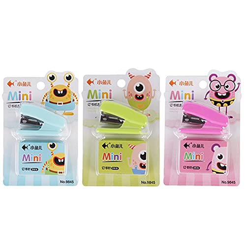 Set Cucitrice Ufficio Mini Desktop Cucitrice Cucitrice con Punti Metallici 3 Pz Portatile Piccolo Mano Spillatrice,Ufficio per Insegnante, Studenti & Impiegato,3 colori vengono spediti a caso.