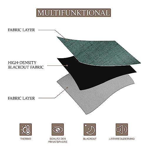 CUCRAF Tende oscuranti al 100% con occhiello, termoisolanti, effetto lino, per soggiorno, cameretta dei bambini, 175 x 140 cm, verde bosco, set da 2 pezzi