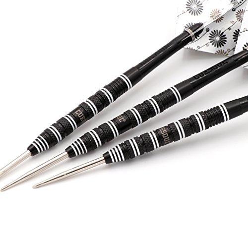 3* 90% slim tungsten dart barrel,well balance combined with Multi-Rings and Knurling Grip.Black coated with sharp white line decorated on barrel.