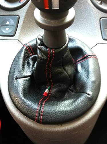 Cuffia cambio compatibile con panda dal 2003 al 2011 in vera pelle nera cuciture rosse