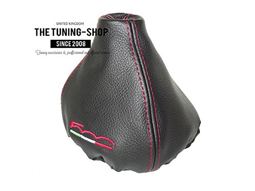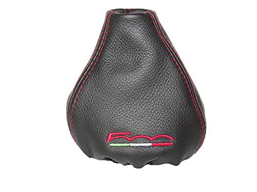 Cuffia della leva del cambio per Fiat 500 dal 2007 al 2015 in pelle nera con ricamo rosso "500 Italian".