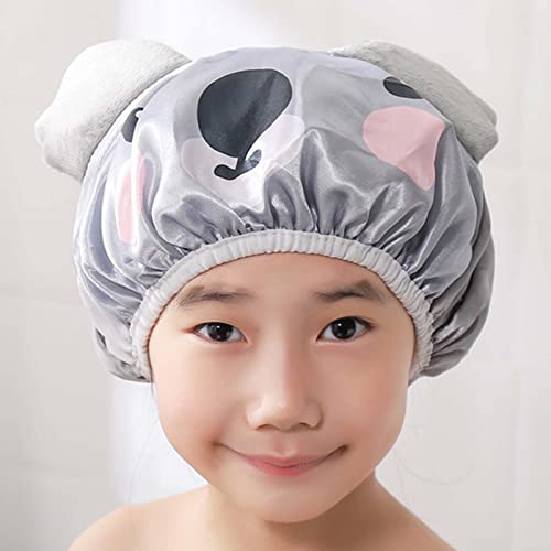 Cuffia per capelli, cuffia da doccia per bambini con design animale, in poliestere, per tutti i colori, tappo da bagno a doppio strato per dormitorio, 2