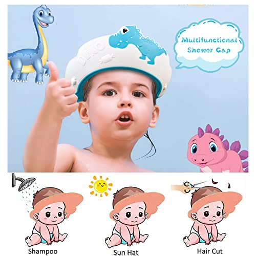Cuffia Doccia Bambini Doccia Cap per Bambino,KAMHBE Dinosauro Cappello Doccia Bambini Bathing Protettivo da Bagnetto, Prevenire l'Acqua Flusso Verso Occhi e Viso (dinosauro-blu)