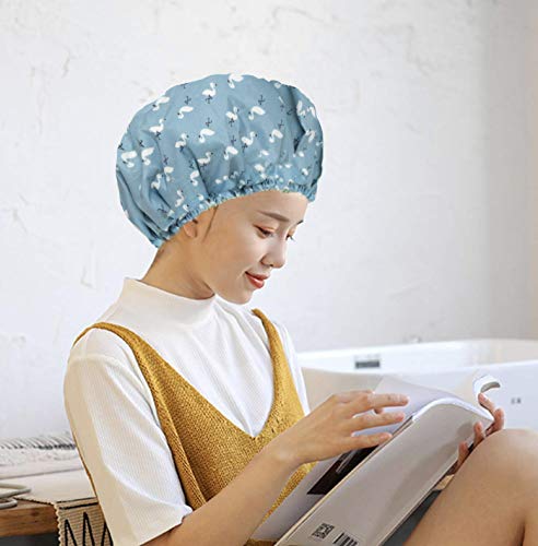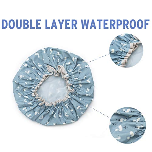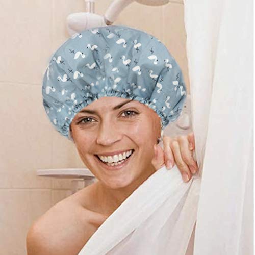 Cuffia da doccia, in EVA, con doppio strato impermeabile, per ragazze e donne (3 tappi per doccia con fenicotteri (blu, rosa, arancione)