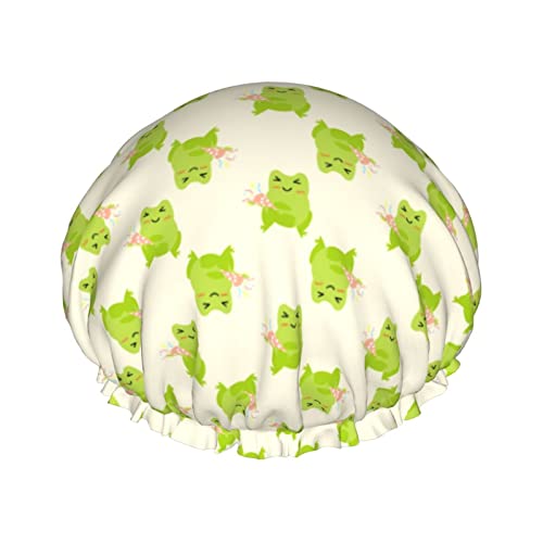 Cuffia da doccia modello rana del fumetto carino per donna uomo cappucci da bagno riutilizzabili copertura per capelli morbida doppia copertura impermeabile