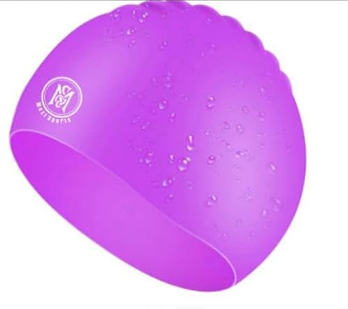 Cuffia da nuoto per bambini, 100% silicone, impermeabile, resistente e inodore, elastica, antiscivolo, per bambini fino a 5-12 anni, con custodia protettiva (viola)