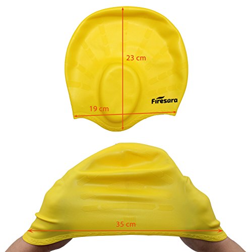 Cuffia da nuoto per capelli lunghi, Firesara impermeabile nuoto in silicone per Dreadlocks o capelli corti per adulti uomini donne giovani bambini mantiene asciutto orecchio capelli con clip per naso e tappi per le orecchie, Yellow
