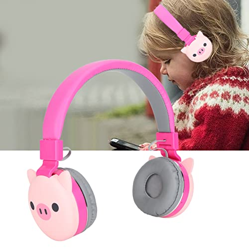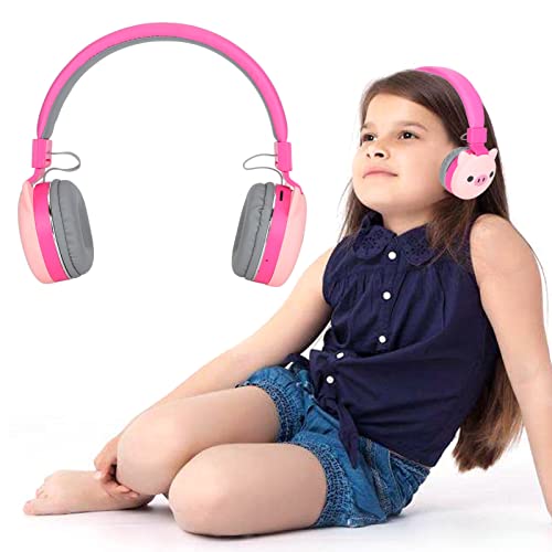 Cuffie per Bambini Professionali, Cuffie Portatili per Bambini con Microfono, Cuffie Stereo per Bambini, Bluetooth 5.0, Cuffie per Cartoni Animati Cablate/Senza Fili, (Maialino Rosso)