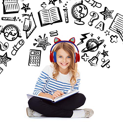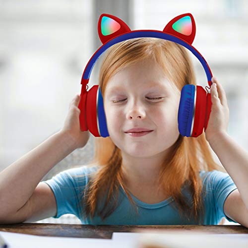 Cuffie per bambini Cuffie senza fili Bluetooth Cat Ear On Ear (rosso blu)