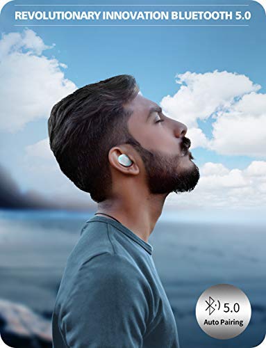 Cuffie Bluetooth 5.0,Aimus Auricolari Bluetooth Senza Fili Hi-Fi Auricolari, Mini Cuffie Wireless in Ear per iPhone e Android Touch Control Palestra Sport Gym con Scatola Ricarica 400mAh(Argento)
