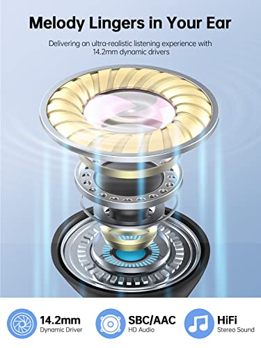 Qualità del Suono Stereo e ENC Chiari Chiamate: Cuffie wireless utilizzano altoparlanti professionali da 14.2 mm, aggiungono un design a diaframma composito, per evitare distorsioni del suono, può ottenere il più autentico esperienza d'ascolto. Dotate di un sistema ENC altamente efficace, auricolare bluetooth built-in microfoni, può effettivamente sopprimere il 90% del rumore di fondo, fornendo una chiara esperienza di chiamata.
