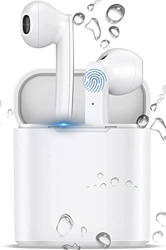 Cuffie Bluetooth,Auricolari Bluetooth Senza Fili con HiFi Stereo,in Ear Cuffie Wireless Sport con Mic,Cuffiette Bluetooth wireless con Controllo Touch IPX6 Impermeabili per iphone Android PC Bianco
