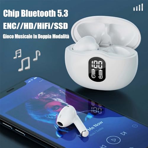 Cuffie Bluetooth, Auricolari Bluetooth 5.3 con Mic, Cuffie Wireless In Ear HiFi Stereo, ENC Riduzione del Rumore Mic, Cuffiette Bluetooth 35 Ore LED Display, Cuffie Senza Fili IPX7 Impermeabili