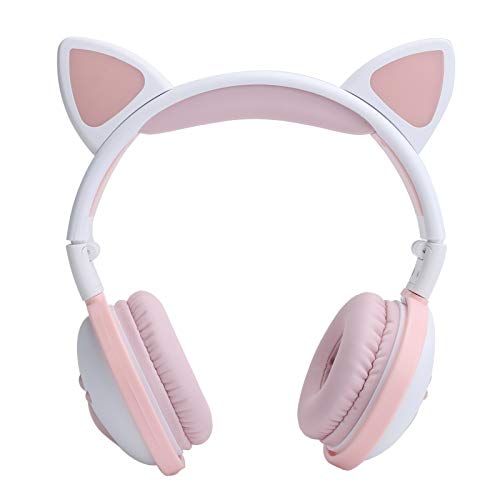 Cuffie Bluetooth con Orecchie di Gatto, Simpatiche Cuffie con Orecchie di Gatto Luminose a LED, Cuffie Wireless Sportive HiFi sopra L'orecchio, Cuffie da Gioco(Rosa Bianco)