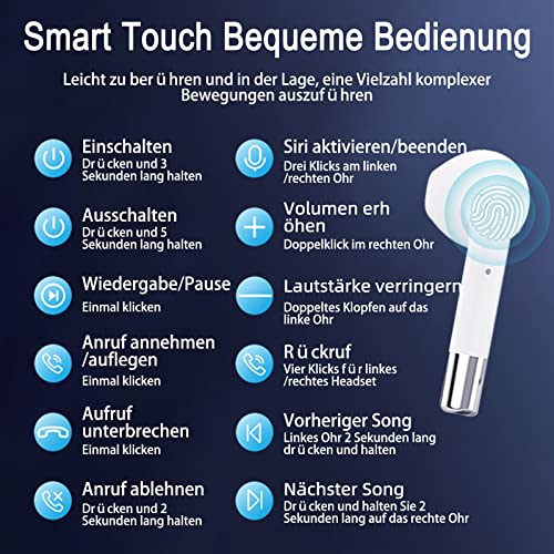 Controllo touch e controllo del volume: insieme ai sensori smart touch, le cuffie Bluetooth possono ottenere il massimo controllo (controllo del volume disponibile), senza utilizzare il telefono e prevenire in gran parte i disturbi come il pulsante fisico (90% delle cuffie Bluetooth: controllo del volume non disponibile). Con un design ergonomico e un nuovo design, le cuffie Bluetooth possono essere posizionate nel condotto uditivo e rimanere al sicuro anche con movimenti intensi.