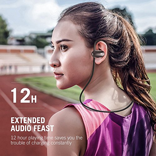 Cuffie Bluetooth TaoTronics Auricolari Wireless Sport (Bluetooth 4.1 A2DP HSP 12 Ore di Riproduzione di Musica Inserti Auricolari in Morbido Silicone Nanorivestimento Interno a Prova di Sudore) - Nero