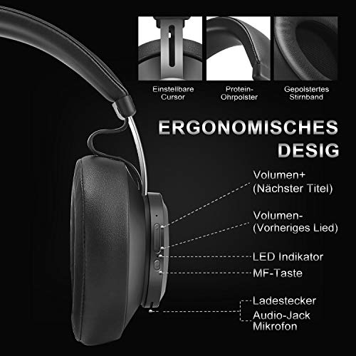 Cuffie Bluetooth 5.0, YINSAN Cuffie Over-Ear con Autonomia 30 Ore, Auricolari Bluetooth Senza Fili Stereo con Microfono, Headphones Wireless per Android Apple iPhone TV Film PC -2019 Versione (Nero)