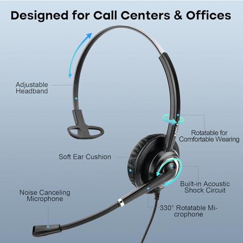 Alta resistenza: questo auricolare per telefono VoIP USB viene fornito con struttura unibody, fascia in acciaio inox e parti in plastica di qualità per garantire la grande robustezza e alta qualità per resistere all'ambiente difficile in contatori, uffici affollati, ecc... Queste cuffi