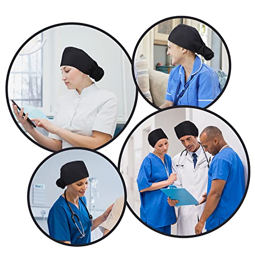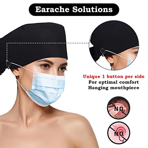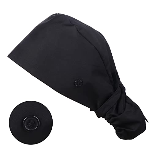 Cuffie Chirurgiche Donna Berretto da Lavoro in Cotone Nero Cuffietta Chirurgica Uomo Infermiera Chirurgico Regolabile con Bottoni Fascia per Sudore Cuffiette Mediche da Taschino da Coda di Cavallo