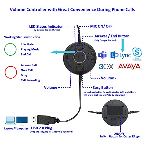 Comodi comandi: le cuffie USB per computer con pulsanti di controllo in linea aumentano la libertà e la produttività per le chiamate quotidiane in conferenza. È possibile regolare facilmente il volume su/giù, il microfono mute. Il sebo integrato può essere acceso manualmente se non si desidera essere disturbati e desiderare una messa a fuoco ottimale. La suoneria commutabile dentro o fuori è perfetta per piattaforme UC. Inoltre, questo auricolare USB da ufficio ha un pulsante di risposta e fine chiamata che funziona con Microsoft Teams, Skype for Business, Lync