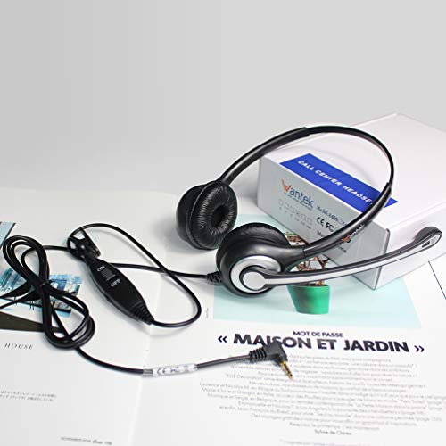 Cuffie 2,5 mm Dual con Microfono a Cancellazione del Rumore e Controllo del Volume, WANTEK Auricolare Call Center per Gigaset Panasonic Telefono Fisso Cordless DECT(F602J25)