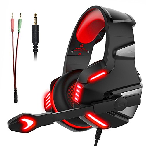 Cuffie Gamer da Gaming Gioco per PS4 PC Xbox One s con Microfono Gaming Headset Over Ear Gamer Stereo con Cavo Auricolari LED per Telefono Portatile MAC 3,5 mm Controllo Volume (Adattatore Incluso)