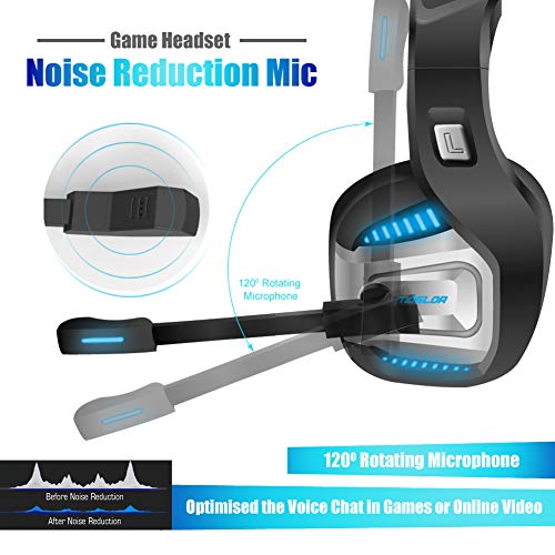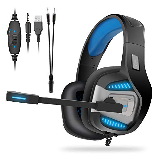 Cuffie Gaming PS4 PC Antirumore Over Ear con Microfono Xbox One 7.1 Bass Stereo Suono Surround virtuale 3.5mm Jack Regolabile e Retrattile per Nintendo Switch, Mac, Laptop, Smartphone (Blue 1)