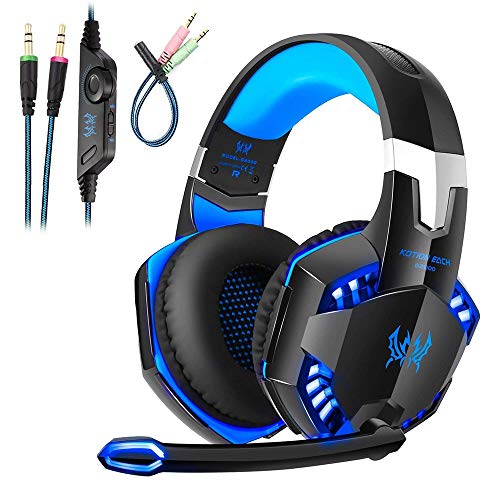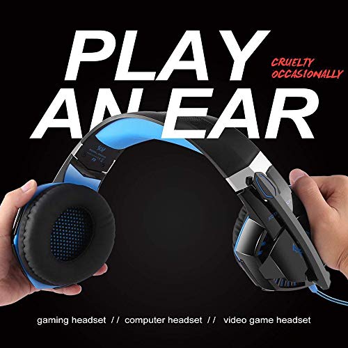 Cuffie Gaming PS4 Con Microfono LED Luce Regolatore di Volume G2000 USB Cuffie Gaming Headset con Audio Surround Cancellazione di Rumore per PC Xbox One Portatili Mac Tablet, Nero/Blu