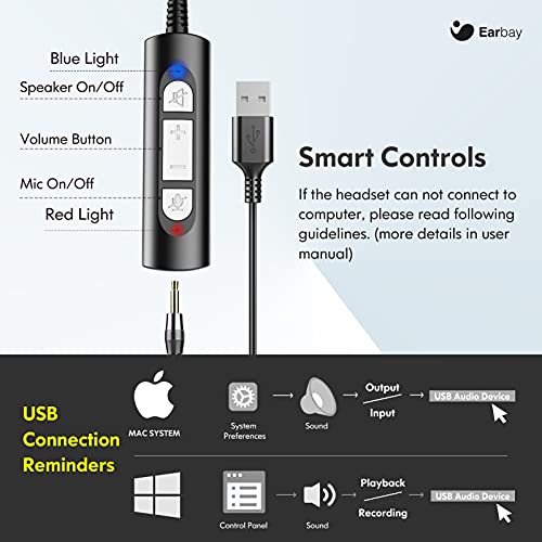 Cuffie USB con Microfono per Computer, Cuffie da Ufficio con Mute per PC, Adattatore Jack da 3.5 mm Tipo C con Cancellazione del Rumore del Microfono per Telefono, Teleconfe, Ms Teams, Skype, Zoom