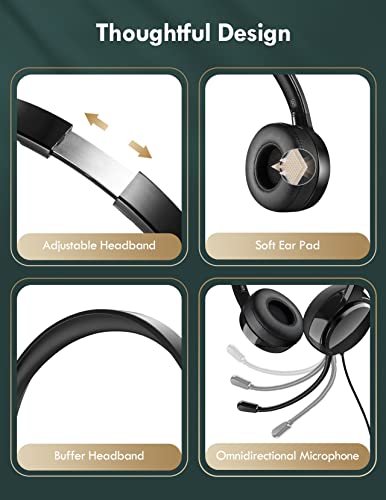 Cuffie con Microfono per PC, Cuffie USB/3.5 mm con Cancellazione del Rumore&Funzione Mute, Suono Stereo Nitido Auricolare con Filo Aziendali per Ufficio, Cuffie PC per Call Center Zoom Seminario Web