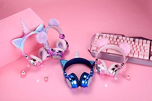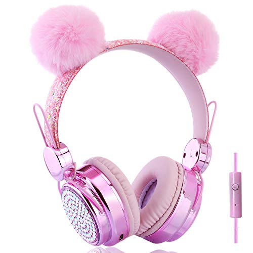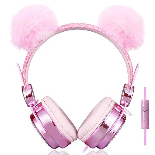 Cuffie con orecchie da orsetto per bambini con microfono integrato, 85 dB per ragazze, adolescenti, bambini, scuola, regali (rosa)