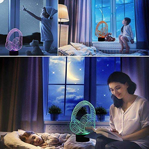 Cuffie da regalo di Natale Lampada da illusione 3D Lampada da notte accanto alla lampada da tavolo, Jawell 16 colori Cambio automatico Touch Switch Lampade di compleanno con telecomando