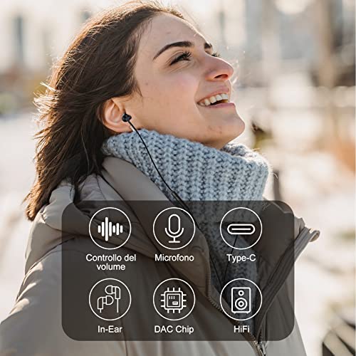【Compatibilità universale】Questo auricolari usb c funzionano con tutti i dispositivi di tipo c senza audio jack da 3,5 mm. inclusi Samsung Galaxy A53/A33/S23/S23+/S23 Ultra/S22/S22+/S22 Ultra/S21/S21+/S21 Ultra/Z Fold 4/Z Flip 4/Z Fold 3/Z Flip 3/S21FE/S20 FE/S20/S20+/S20 Ultra, Xiaomi 12 Pro/12/12X/Pad 5/11T/11T Pro/Lite 5G NE, iPad Mini 2021, iPad Air 2022 2021 2020, MacBook Pro, Google Pixel 7/7 Pro/6a/6, Oneplus 10/9 Pro/9/8/8T, Motorola Edge 30 Ultrae/Fusion altri dispositivi di type C.