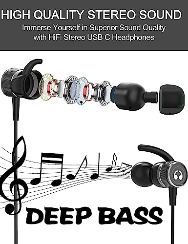 Cuffie USB C per Samsung S22 S23 Ultra S21 S20 fe A33 5g A54 A53 A34, Magnete Metallico Auricolari USB Type C, Auricolari con Filo USB C per Huawei P30 Pro Google Pixel Oneplus Xiaomi