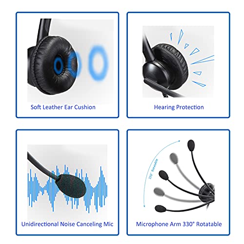 Cuffia super confortevole: cuffie RJ9 con cuscinetti in similpelle prot in super morbido, ipoallergenico, non facile da usare, fascia regolabile per adattarsi a diverse dimensioni di T, paraorecchie rotanti, non dolore, non spingere le orecchie per un uso prolungato. Braccio di microfono girevole a 330 gradi per portare il microfono da ogni lato, super cuffia di centro chiamata per il marketing e gli uffici.