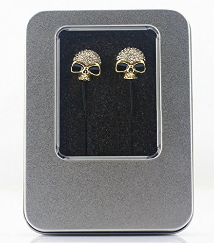 3,5 mm in Ear cuffie in testa di morto Design, Skull Headphones in acciaio inox con cuffie cavo, Cristallo Pietre HD di colore oro