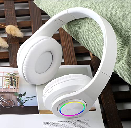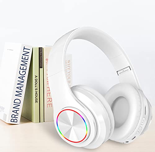 Cuffie wireless Bluetooth 5.0, con microfono, stereo HiFi, pieghevoli, senza fili, per ascoltare musica e telefonare (bianco)