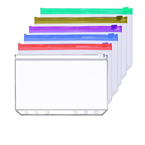 CUHZA A6 Formato 6 Fori Raccoglitore ad Anelli Tasche, Cerniere Plastica Cartelle Impermeabile, Cerniera Borsa Foglia Sciolto, per Documenti Sfusi, Quaderni e Carte