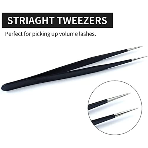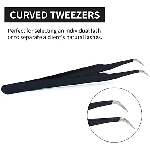 CUHZA 2 pinzette a punta curve dritte in acciaio inossidabile ,pinzette antistatiche,Per l'estensione delle ciglia, adesivo per unghie, strass, clip per ciglia, gel acrilico, nail art fai da te