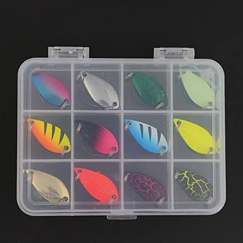 CuisinSmart 12pcs Cucchiaio Esca da Pesca Artificiale in Metallo Esca Finta con Scatola di immagazzinaggio Esca Multicolore a Lancio Lungo Esca Attrezzatura da Pesca 3.5g