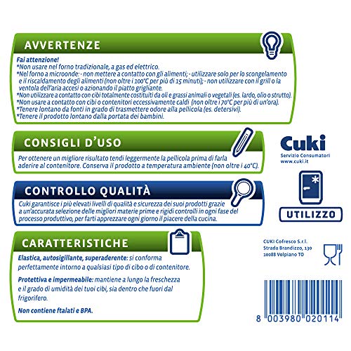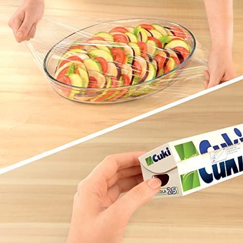 Superaderente, elastica, autosigillante, Cuki Pellicola avvolge alla perfezione qualsiasi cibo o contenitore;